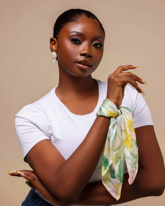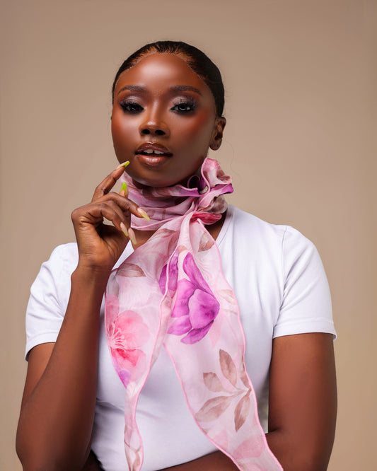 Hibiscus Neckerchief Scarf, 100% Soft Silk Organza