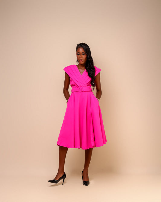 Ìfédayò (Rhoda 1.0) Belted Faux-Wrap Dress FUCHSIA PINK
