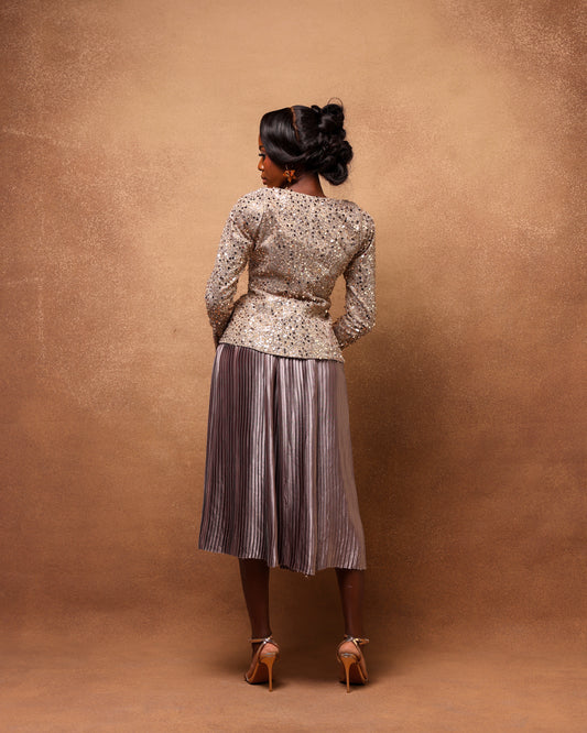 Òkìkìọlá Embellished Fluted Jacket & Pleated Skirt 2-Piece Set